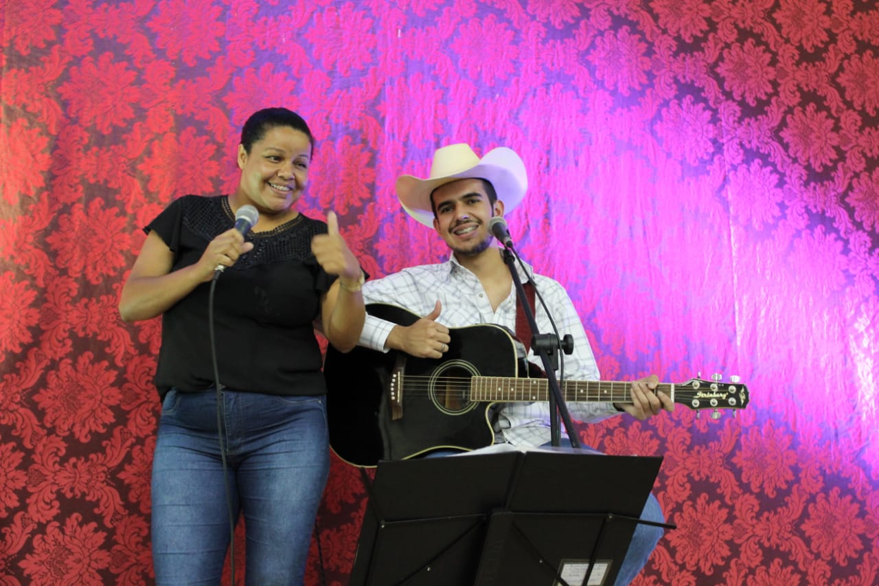 A noite foi animada pelo violeiro Lucas Eduardo, da cidade de Lobato e também contou com apresentação de violão das alunas do Projeto Mais Educação, Livia Lovanholi e Izabeli Sartori, orientadas pelo professor Jorge.